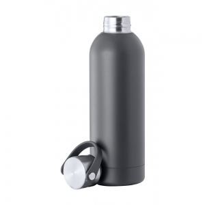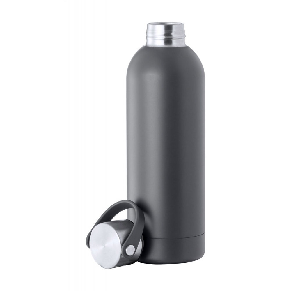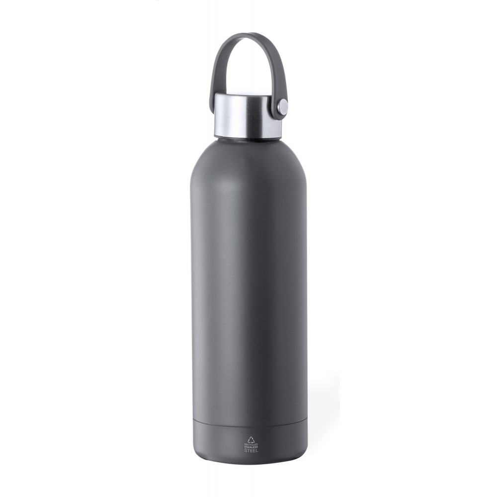 Artikel-Nr: AND722816-77Doppelwandige vakuumisolierte Flasche aus recyceltem Edelstahl mit Trageverschluss. Füllmenge: 500 ml.