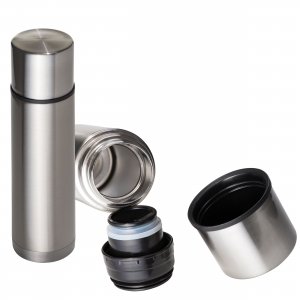 Artikel-Nr: EAG042907Doppelwandige, auslaufsichere Vakuum Isolierkanne aus Edelstahl (Fassungsvolumen 500 ml) mit Schnellverschluss und einem integrierten Becher. Ihre Werbung wird mittels Lasergravur angebracht.