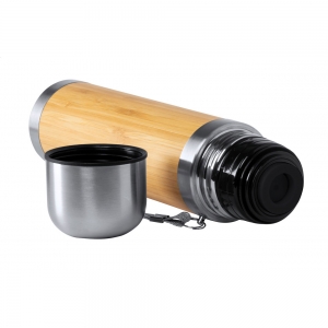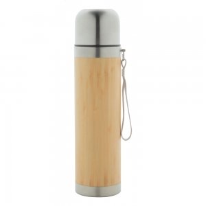 Artikel-Nr: AND721541Isolierkanne aus Edelstahl mit Bambusmantel und Trageschlaufe. Füllmenge: 420 ml.