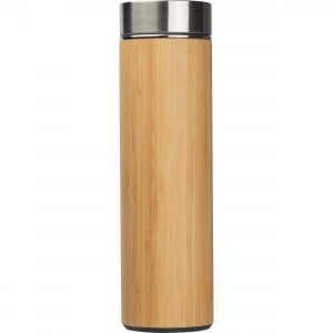 Artikel-Nr: EAG136213Auslaufsichere, doppelwandige Vakuum Isolierkanne aus Edelstahl mit Bambusummantelung, Sieb, Edelstahlverschluß und einem Fassungsvolumen von 550 ml. Wir lasern Ihre Werbung auf der Bambusfläche.