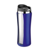 Colorline Trinkbecher 0,4 l aus 18/8 Edelstahl Innen, Kunststoff transparent und blau außen. Kunststoff-Schraubdeckel mit Trinköffnung und Quickstop Ausgießsystem per Tastendruck, Anti-Rutsch-Boden.