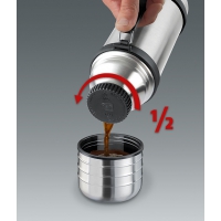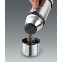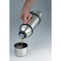 Artikel-Nr: 753VA9562DEinfach, aber genial! Eine Isolierflasche mit 2 abschraubbaren Trinkbechern - endlich auch zu zweit gleichzeitig trinken! Die Markierung am Griff zeigt an, auf welcher Seite sich die Ausgießöffnung befindet.