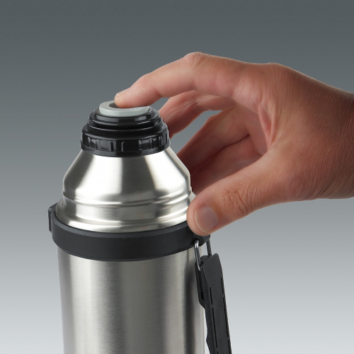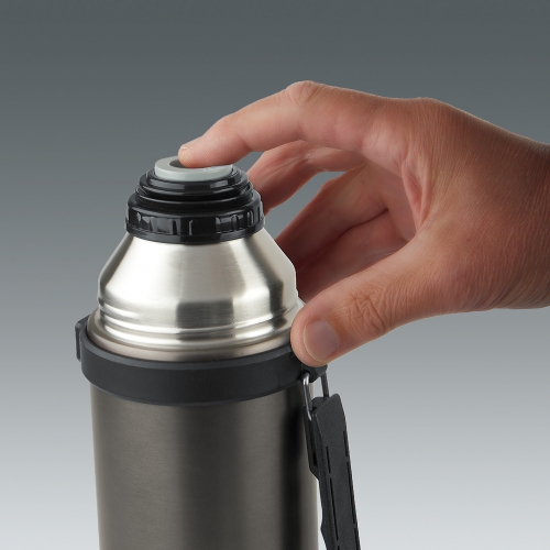 Isolierflasche 1,0 l mit Quickstop-Ausgießsystem, abschraubbarer Trinkbecher, Klappgriff, abnehmbarer Tragegurt