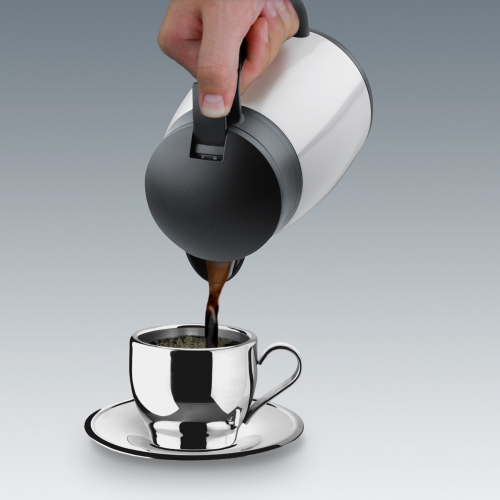 Isolierkanne 1,0 l aus Edelstahl mit weißer Farbbeschichtung, Kunststoff-Schraubverschluss mit Quickstop Außgießsystem für Einhandbedienung, Isolierender Kunststoffgriff