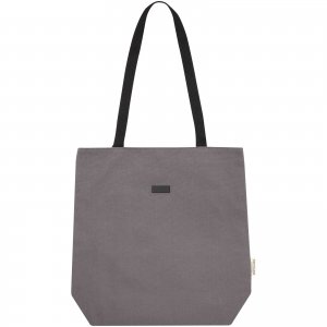 Tasche aus GRS-zertifiziertem, recyceltem Canvas und GRS-zertifiziertem RPET-Futter. Diese vielseitige Tasche verfügt über ein gepolstertes 15"-Laptopfach und zwei Innenfächer für Handy, Geldbörse oder Zubehör. Die Tasche wird mit einem einfachen Knopfverschluss geschlossen und verfügt über bequeme Tragegriffe aus Baumwollgewebe. DDie dekorative matte Metallplatte wird Ihr Logo gekonnt in Szene setzen.