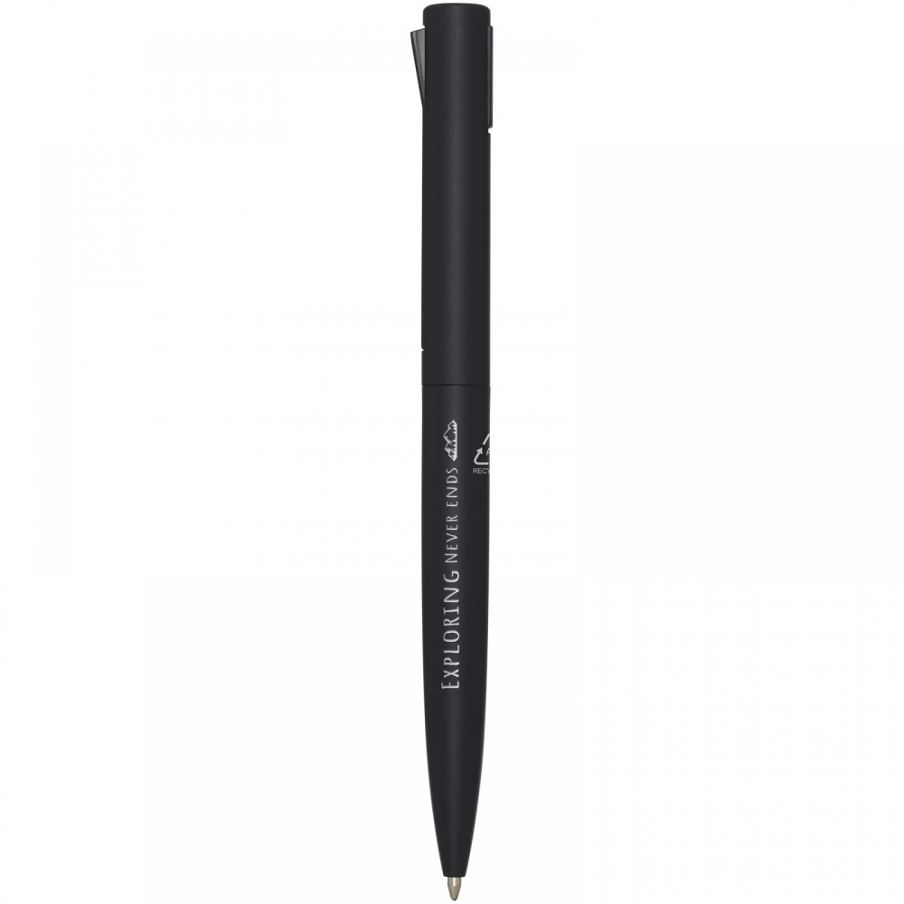 Artikel-Nr: CPO10791690Kugelschreiber, dessen oberer Schaft aus recyceltem Kunststoff und dessen unterer Teil aus recyceltem Aluminium besteht. Der Clip besteht aus Eisen. Tintenfarbe: Schwarz. Schreiblänge: 1000 Meter. Strichstärke: 1,0 mm.