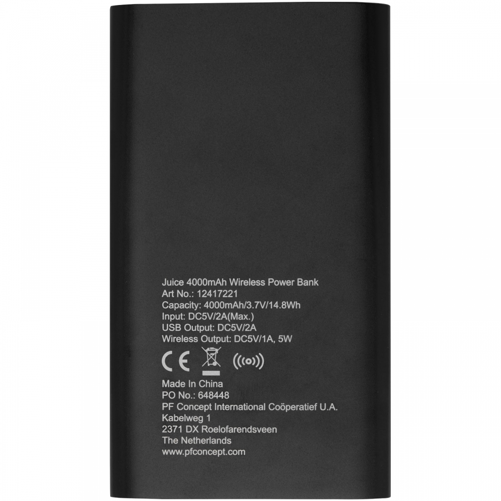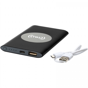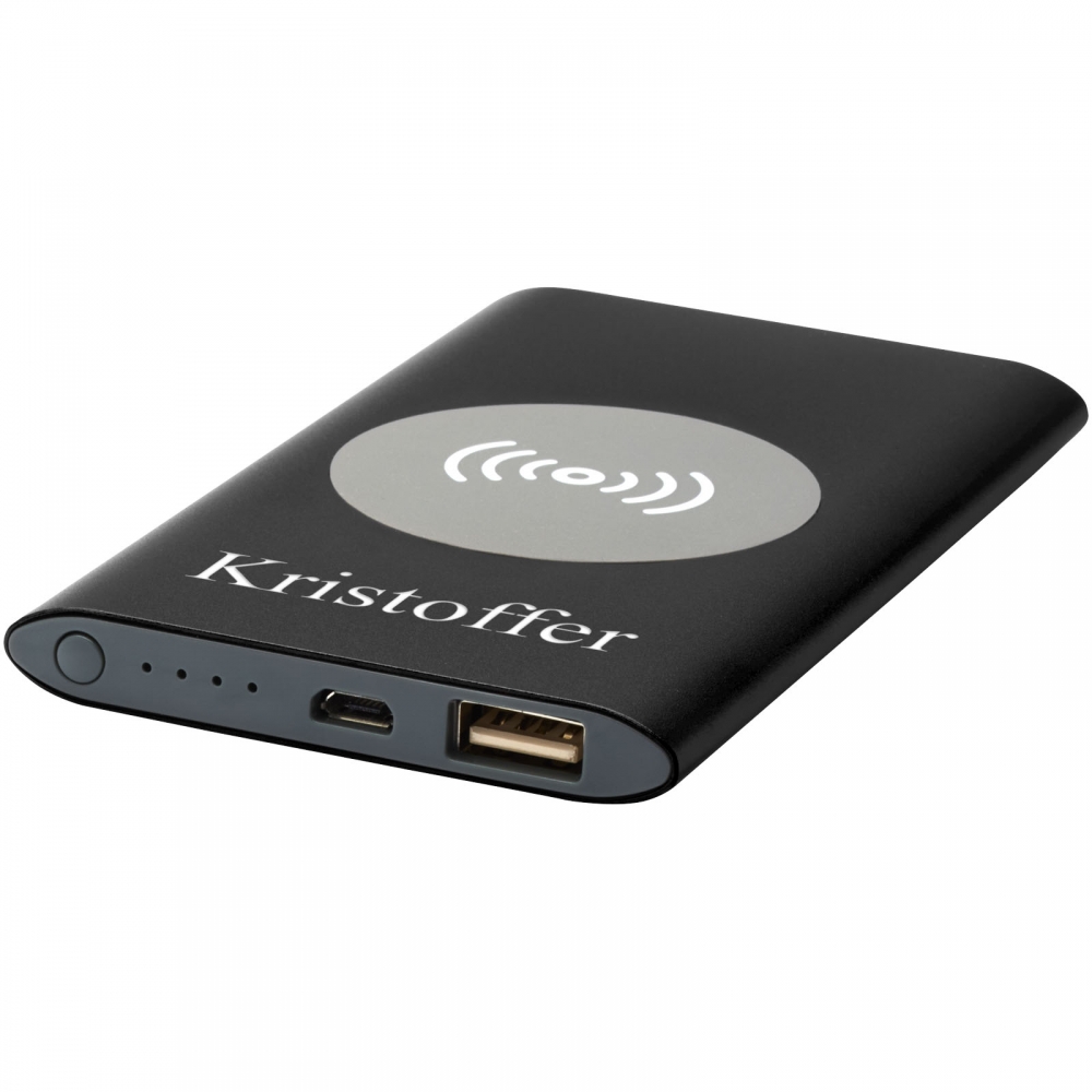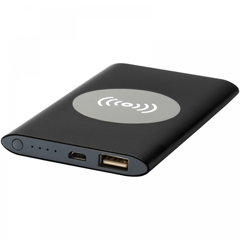 Artikel-Nr: CPO124172904000 mAh Powerbank mit Aluminiumgehäuse. Unterstützt kabelloses Laden mit 5 W und wird auch mit Mikro-USB-Ausgang geliefert, um das Aufladen per Kabel zu ermöglichen. Mit dem 4000 mAh Lithium-Polymer-Akku kann ein Smartphone vollständig aufgeladen werden. Leistungsanzeige, die jederzeit den Energiepegel anzeigt. Mikro-USB-Anschluss: 5 V/2 A Ausgang: 5 V/2A. Kabelloser Ausgang 5 W. Inklusive PVC-freiem TPE Kunststoff Ladekabel. Lieferung in einer Standard-Geschenkbox.