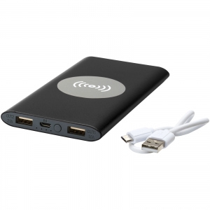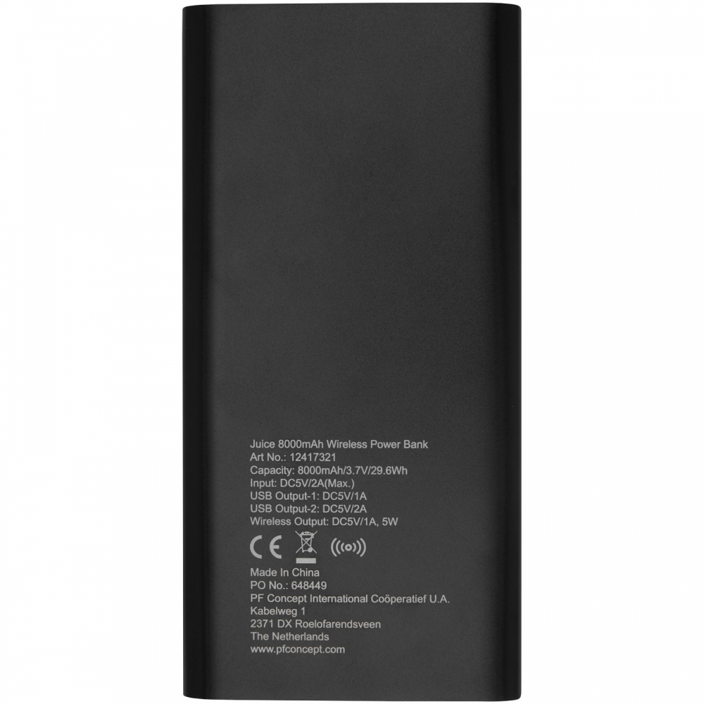 Artikel-Nr: CPO124173908000 mAh Powerbank mit Aluminiumgehäuse. Unterstützt kabelloses Laden mit 5 W und wird auch mit Mikro-USB-Ausgang geliefert, um das Aufladen per Kabel zu ermöglichen. Mit dem 8000 mAh Lithium-Polymer-Akku kann ein Smartphone mehrmals vollständig aufgeladen werden. Leistungsanzeige, die jederzeit den Energiepegel anzeigt. Mikro-USB-Anschluss: 5 V/2 A Ausgang: 5 V/2A. Kabelloser Ausgang 5 W. Inklusive PVC-freiem TPE Kunststoff Ladekabel. Lieferung in einer Standard-Geschenkbox.