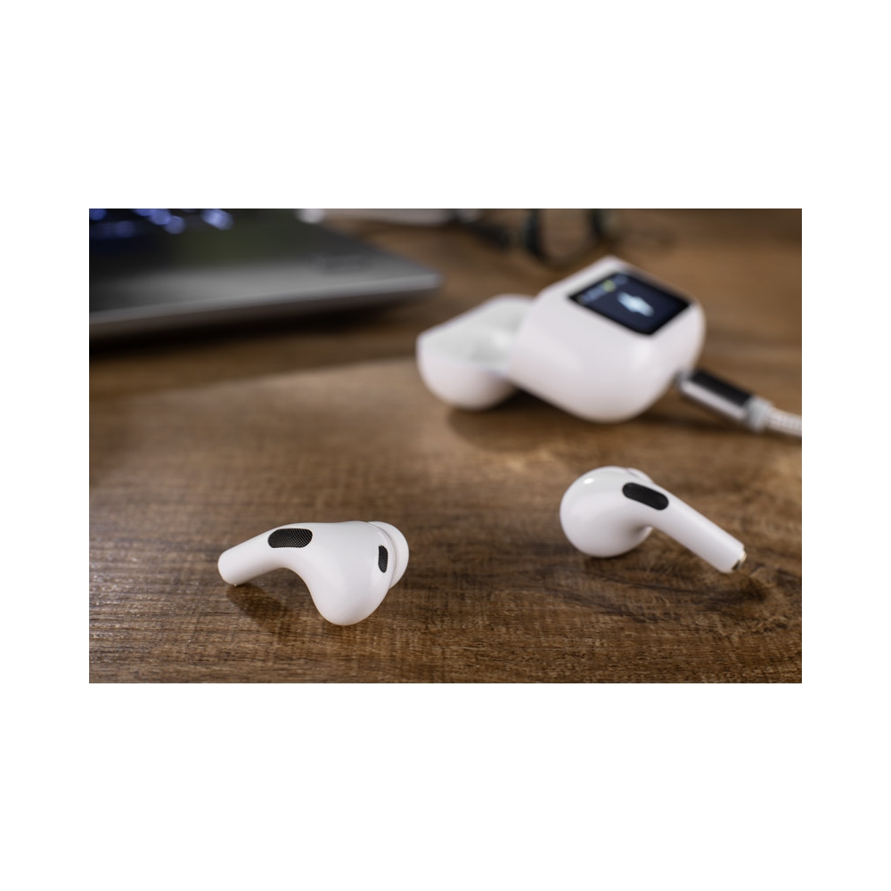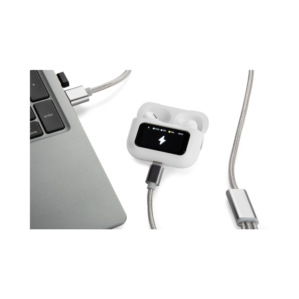 Artikel-Nr: ARD09179-01Die kabellosen SENSIFY-Kopfhörer sind ein modernes Premium-Gadget, das die Funktionalität von In-Ear-Kopfhörern mit einem fortschrittlichen Gehäuse mit Farb-Touchscreen-Display kombiniert. Es ermöglicht Ihnen, die Lautstärke zu regeln, die Geräuschunterdrückung (ANC / ENC) zu aktivieren, in den Umgebungsgeräuschmodus (Ambient) zu wechseln und den Ladestand anzuzeigen. Der Kopfhörer bietet eine Betriebsdauer von bis zu 4 Stunden, und das 300-mAh-Gehäuse ermöglicht das mehrfache Aufladen. Das Gerät lässt sich über Bluetooth mit einem Smartphone verbinden und unterstützt die Touch-Steuerung. Das Produkt ist in einer ästhetisch ansprechenden, minimalistischen Premium-Verpackung verpackt. Das Aufladen erfolgt über USB-C (Kabel nicht im Lieferumfang enthalten).