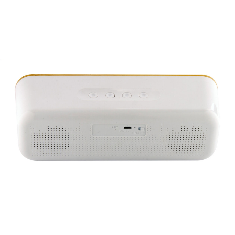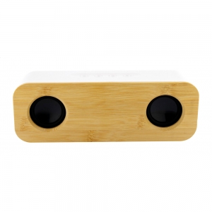 Artikel-Nr: AND800536Kabelloser Lautsprecher im Gehäuse aus recyceltem ABS und Bambus mit 2 Lautsprechertreibern und eingebautem, wiederaufladbarem Akku. Mit Freisprechfunktion und FM-Radiofunktion. Inklusive USB-Ladekabel.