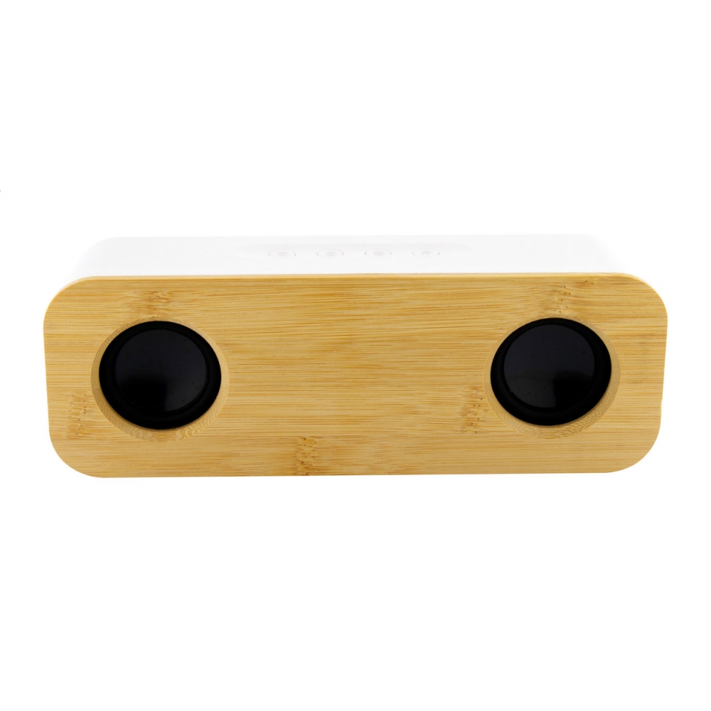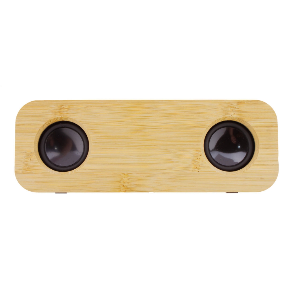 Artikel-Nr: AND800536Kabelloser Lautsprecher im Gehäuse aus recyceltem ABS und Bambus mit 2 Lautsprechertreibern und eingebautem, wiederaufladbarem Akku. Mit Freisprechfunktion und FM-Radiofunktion. Inklusive USB-Ladekabel.