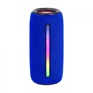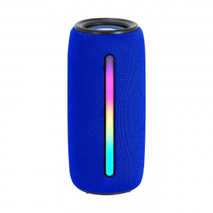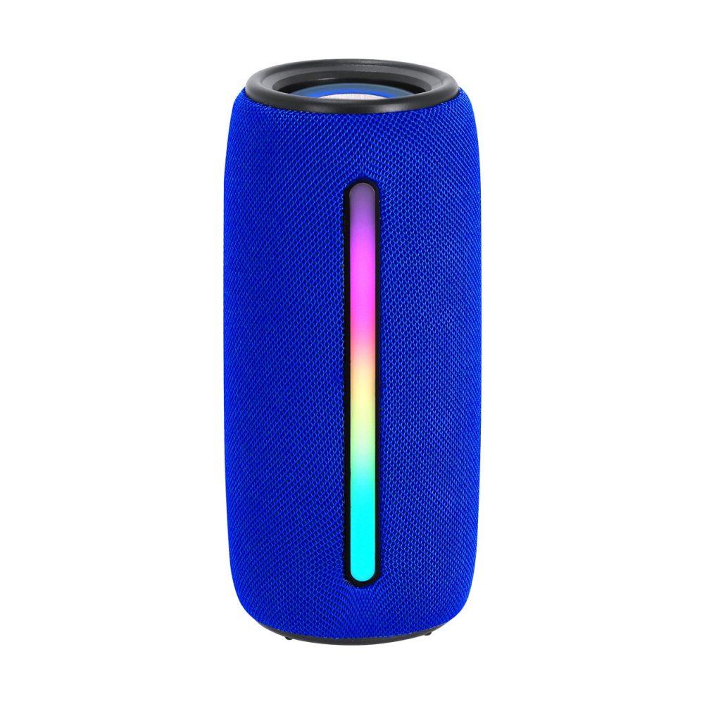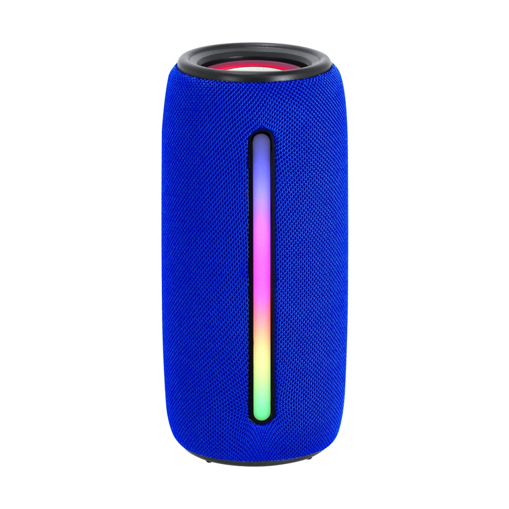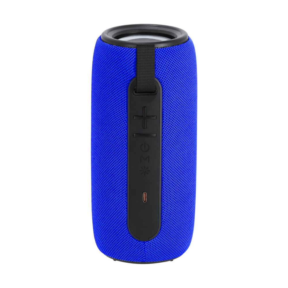 Artikel-Nr: AND735540-06Drahtloser Lautsprecher mit Polyester-Stoffbezug, mehrfarbigem LED-Licht (mit 5 Lichtmodi) und Trageschlaufe. Mit 2 Lautsprechertreibern, Freisprechfunktion und eingebautem Akku (1200 mAh). Inklusive USB-Ladekabel.