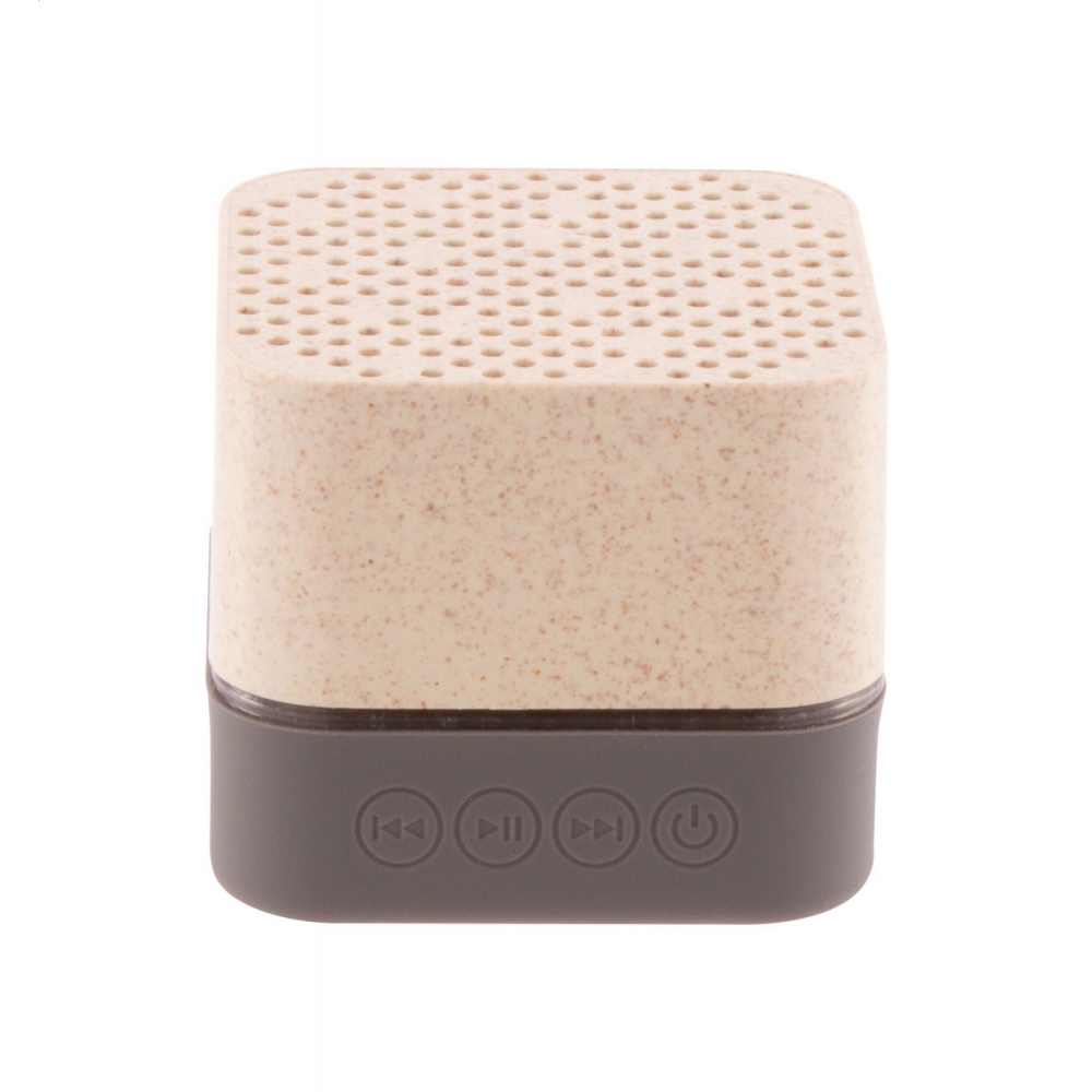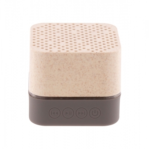 Artikel-Nr: AND800534-00Kabelloser Lautsprecher in ökologischem Weizenstroh-Kunststoffgehäuse mit Gummiboden, mehrfarbiger LED-Beleuchtung und eingebautem, wiederaufladbarem Akku. Mit Freisprechfunktion und Micro-SD-Player-Funktion. Inklusive USB-Ladekabel.