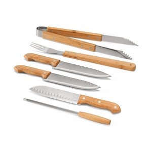 Artikel-Nr: PST53844-160Grill-Set im Etui aus Bambus. Bestehend aus sechs Utensilien aus Edelstahl und Bambus: 3 unterschiedliche Messer, Grillzange, Gabel und Schärfer. Da das Produkt aus natürlichen Materialien hergestellt wird, können Farbe des Produkts sowie das Druckergebnis von Produkt zu Produkt unterschiedlich sein. Custodia: 455 x 160 x 65 mm