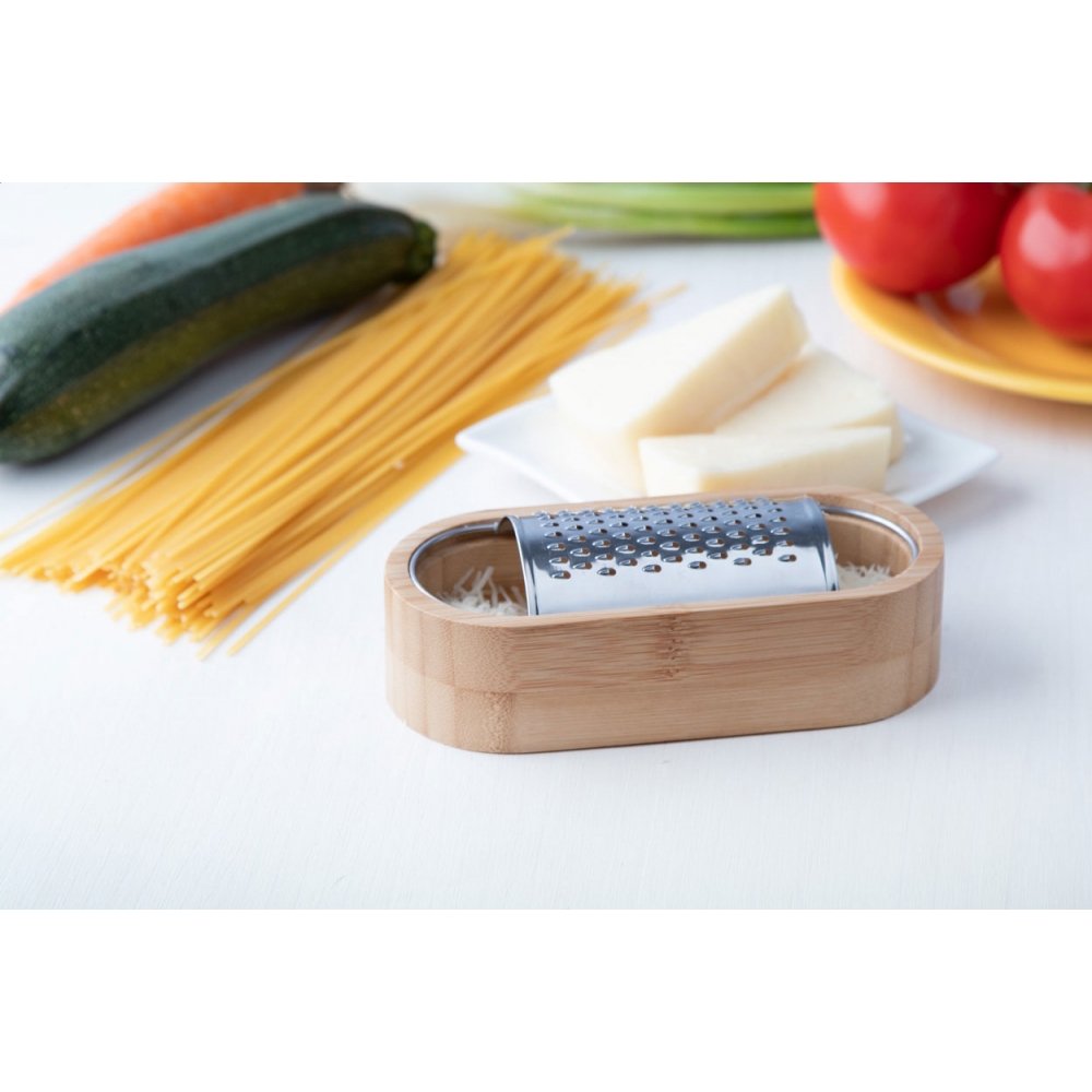 Artikel-Nr: AND800419Käsereibe aus Edelstahl mit Bambus-Auffangbehälter.