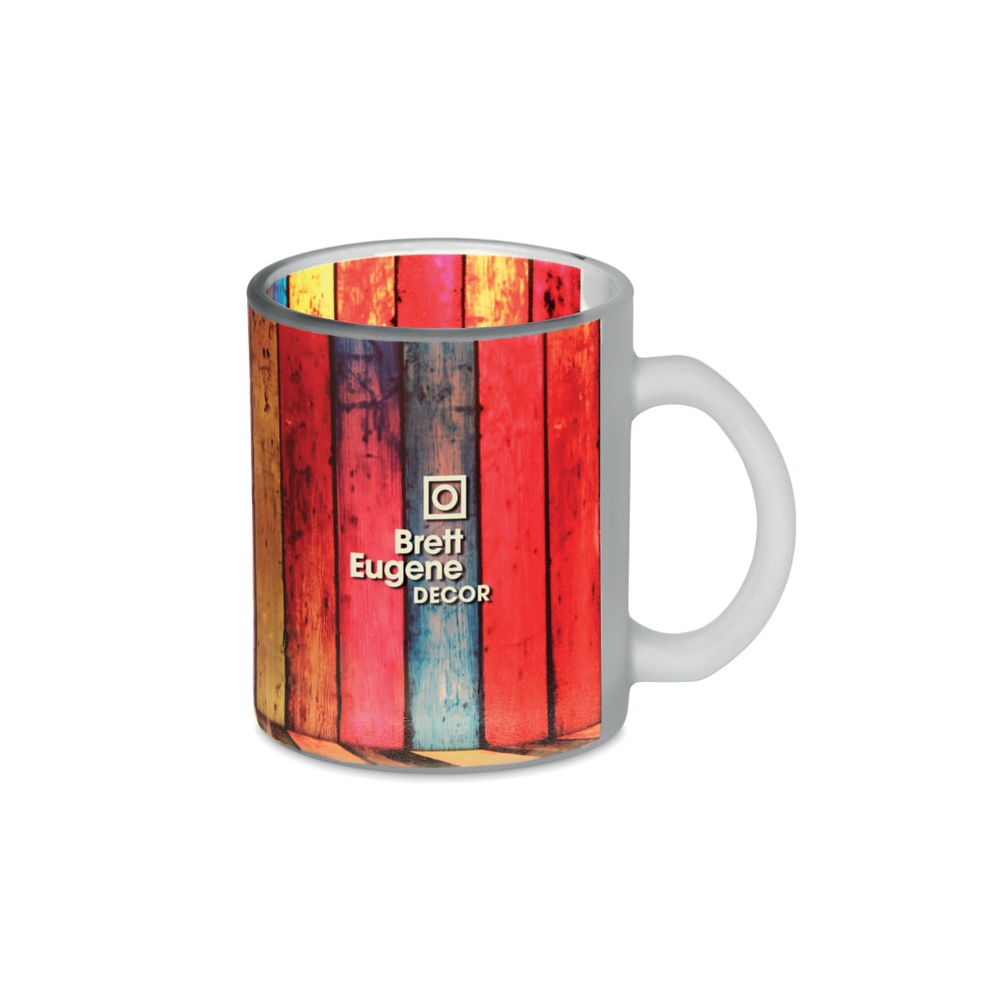 Artikel-Nr: OCBMO6117-26Kaffeebecher aus mattem Glas mit spezieller Beschichtung geeignet für Sublimationsdruck. Füllmenge: 300 ml. Für einen langanhaltenden Sublimationstransfer empfehlen wir Spülmaschinenreinigung bis max. 40°C. Tampondruck ist nur für die leichte Handwäsche geeignet.