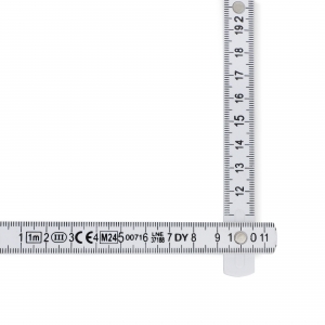 Artikel-Nr: ART90210N0001Kalibrierter Zollstock mit einer Gesamtlänge von 1 Meter. Dieser Maßstab entspricht der Europäischen Messgeräterichtlinie (MID 2014/32/EU), Klasse 3. Das bedeutet, dass der Zollstock gemäß den europäischen Richtlinien für hohe Messgenauigkeit zertifiziert ist.