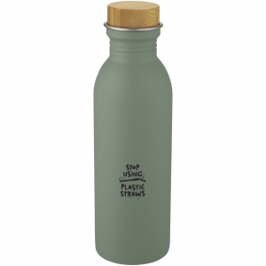 Artikel-Nr: CPO10067762Einwandige Sportflasche aus 18/8-Edelstahl mit einem Deckel aus Bambus. BPA-frei, geprüft und zugelassen nach dem deutschen Lebensmittelrecht (LFGB). Auf Phthalate geprüft und zugelassen gemäß den REACH-Vorschriften. Der verwendete Bambus stammt aus nachhaltigen, umweltfreundlichen und sozialverträglichen Quellen. Das Fassungsvermögen beträgt 650 ml. Handwäsche empfohlen. Verpackt in einer Geschenkbox aus Recyclingkarton.