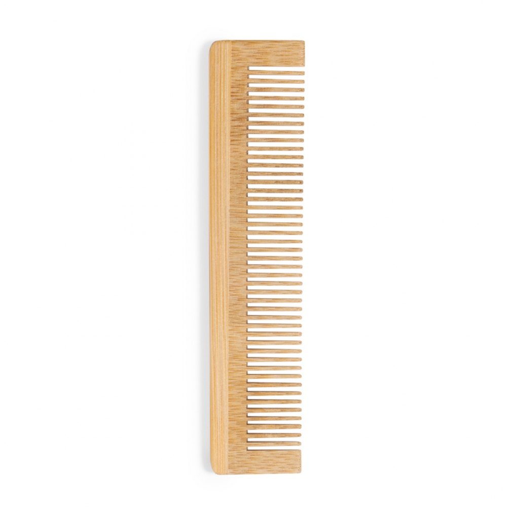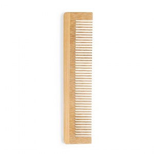 Artikel-Nr: KTO20556000000Kamm aus poliertem Bambus mit gleich großen Borsten. Einzeln verpackt in einer recycelten Papiertüte.