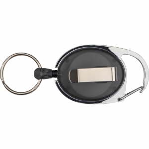 Artikel-Nr: EAG117103Schlüsselanhänger mit Karabinerhaken und Gürtelclip, sowie einem ausziehbaren Schlüsselring. Ihre Werbung wird auf das farbige Kunststoffteil gedruckt.