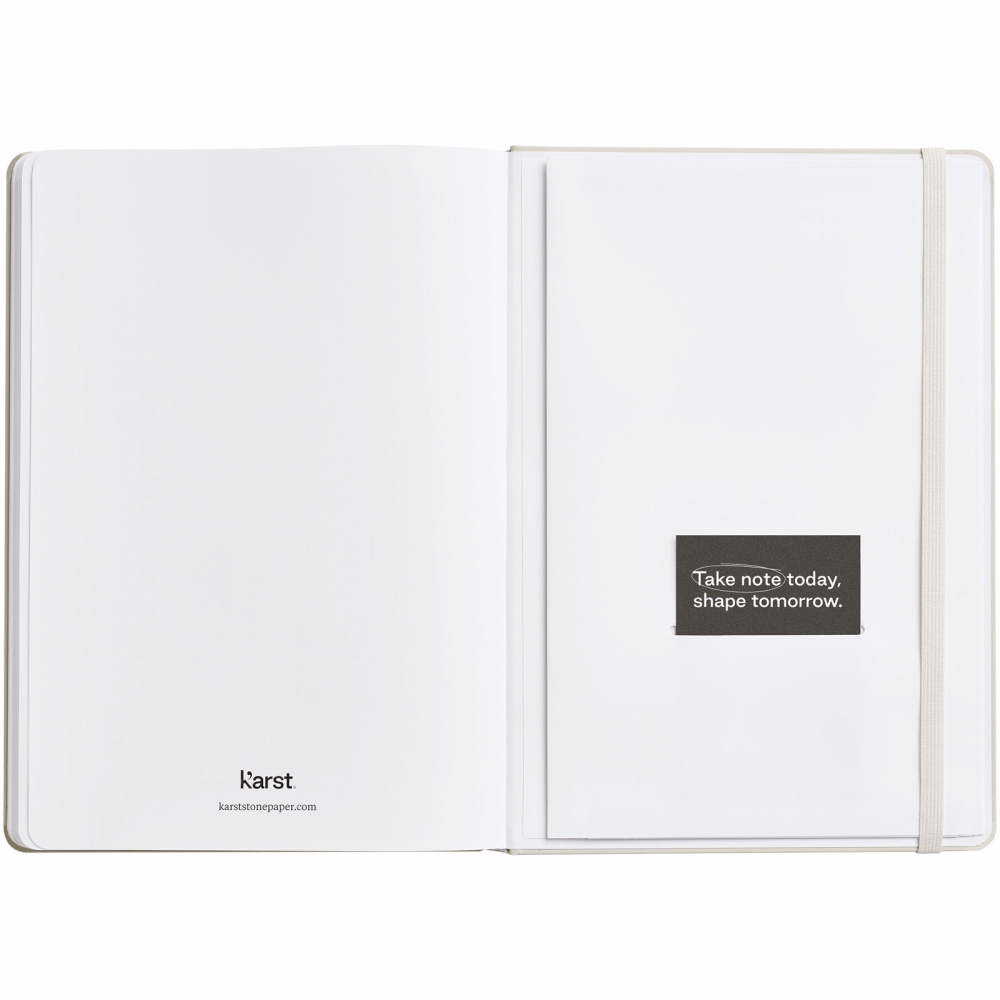 Artikel-Nr: CPO10779090Das Karst® A5 Hardcover-Notizbuch ist ein Bestseller. Die glatte Textur der Seiten und der Einband, mit dem das Buch aufgeschlagen flach liegt, bieten reichlich Komfort und Platz für Ihre Notizen und Ideen. Mit einem Elastikband zum Verschließen des Notizbuchs, 144 wasserfesten, reißfesten, linierten Seiten, einer erweiterbaren Rückentasche zur Aufbewahrung und einem Trennband mit heißgesiegelter Spitze und abgerundeten Ecken.