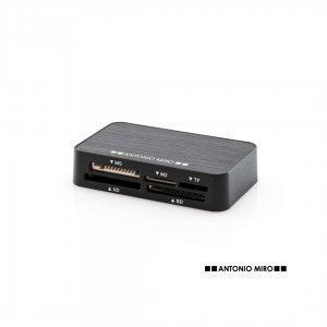 Artikel-Nr: KTO17020002000Kartenleser von Antonio Miró aus elegantem schwarzem Aluminium. Kompatibel mit MS-, M2-, TF-, XD-, SD- und CF-Karten. Präsentiert in einer individuellen Box mit dem Markenlogo und weichem, gestanztem Schaumstoff im Inneren.