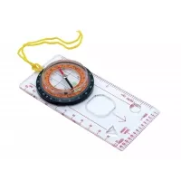 Artikel-Nr: 688PLR020Kartenkompass auf farbloser Kunststoffplatte. Drehbare Kompassskala. Phosphoreszierende Ablesepunkte. Lupe, Lineal in cm, 2 Symbolmatritzen (Dreieck und Kreis). Kordel.