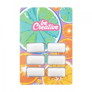 Artikel-Nr: AND7169436 Stück zuckerfreier Kaugummi im Blister mit individuell gestalteter, vollfarbig bedruckter perforierter Papierhülle. Mindestmenge: 100 Stk.