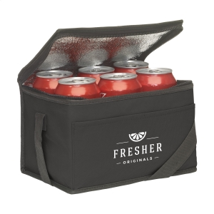 Artikel-Nr: CLP413298WoW! Kühltasche aus recyceltem nonwoven Polyester (80 g / m²). Geeignet für 6 Getränkedosen oder Lebensmittel. Funktional, kompakt, leicht und stark. Mit Trageriemen. GRS-zertifiziert. Recyceltes Material insgesamt: 82%. Fassungsvermögen ca. 4 Liter.