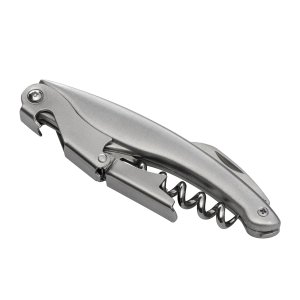 Artikel-Nr: RFS52619-SRDas Kellnermesser RE98-Silverserve ist äußerst praktisch und bequem zu handhaben. Der Weinflaschenöffner aus Aluminium passt perfekt in die Hand und hat ein angenehm leichtes Gewicht. Drei Werkzeuge stehen zur Verfügung: ein Korkenzieher, ein Flaschenöffner sowie ein Folienschneider mit robustem Sägeschliff. Das besondere Highlight an diesem Kellnermesser ist seine Doppelhub-Hebelmechanik. Dank dieser Funktion lassen sich selbst lange und zerbrechliche Korken spielend leicht entfernen. Alle Werkzeuge können sicher eingeklappt und platzsparend aufbewahrt werden. Für Werbebotschaften bieten wir eine edle Lasergravur auf dem Griff des Kellnermessers an. So sind Logo und Slogans immer gut sichtbar. Der Artikel wird in einer hochwertigen Schuber-Verpackung geliefert.
