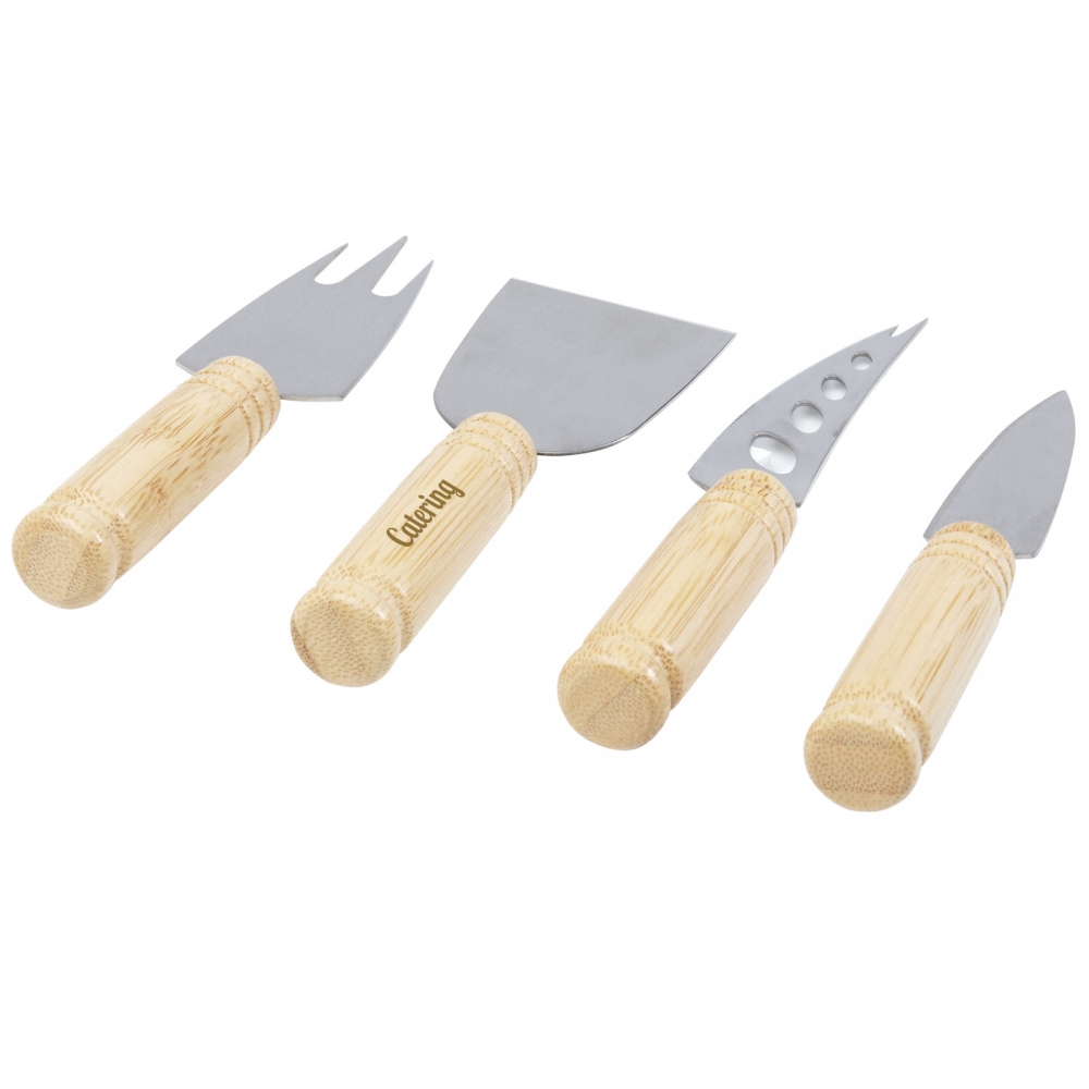 Artikel-Nr: CPO113303064-teiliges Käseset aus Bambus, bestehend aus einer Käseschaufel (13,3 x 4,7 cm), 2 Käsemessern (13,5 x 2 cm und 15,3 x 2,5 cm) und einer Käsegabel (14 x 3,5 cm). Ergonomisches Griffdesign, gute Größe und runder Griff erleichtern das Greifen. Die Griffe für die Bestecke sind 7 cm lang und haben einen Durchmesser von 1,9 cm. Zum Wickeln, Schneiden, Hobeln, Raspeln und Verteilen von verschiedenen Hart- und Weichkäsesorten. Sie sind leicht und platzsparend, lassen sich einfach in Ihrem Küchenschrank verstauen und eignen sich perfekt für Partytabletts oder Esstische. Der verwendete Bambus wird nach nachhaltigen Normen beschafft und produziert.