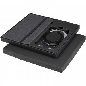 Artikel-Nr: CPO10716482Ein praktisches Präsentset mit einem A6 Notizbuch und einer MagSafe Wallet. Das Notizbuch hat einen dunkelgrauen Einband aus recyceltem Kunststoff, 80 linierte cremefarbene Blätter aus 70 g / m² Papier und einen schwarzen Gummizugverschluss. Die transparente MagSafe Wallet bietet Platz für eine Karte und lässt sich magnetisch an iPhone Modellen ab dem iPhone 12 befestigen. Zusätzlich wird ein Metallring für die Verwendung mit anderen Smartphones mitgeliefert. Beide Artikel sind in einer eleganten, schwarzen Box aus Karton verpackt.