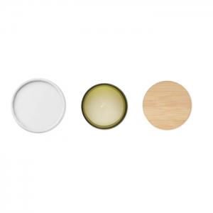 Artikel-Nr: OCBMO6612-09Kerze in einem Halter aus Milchglas mit Deckel aus Bambus. Wachs auf pflanzlicher Basis. Unterschiedliche Düfte. 120 g. Brenndauer: 20 Stunden. Verpackt in einer Papierhülse. Bambus ist ein natürliches Produkt, es kann daher zu leichten Abweichungen in Farbe, Dekor und Maßen kommen.