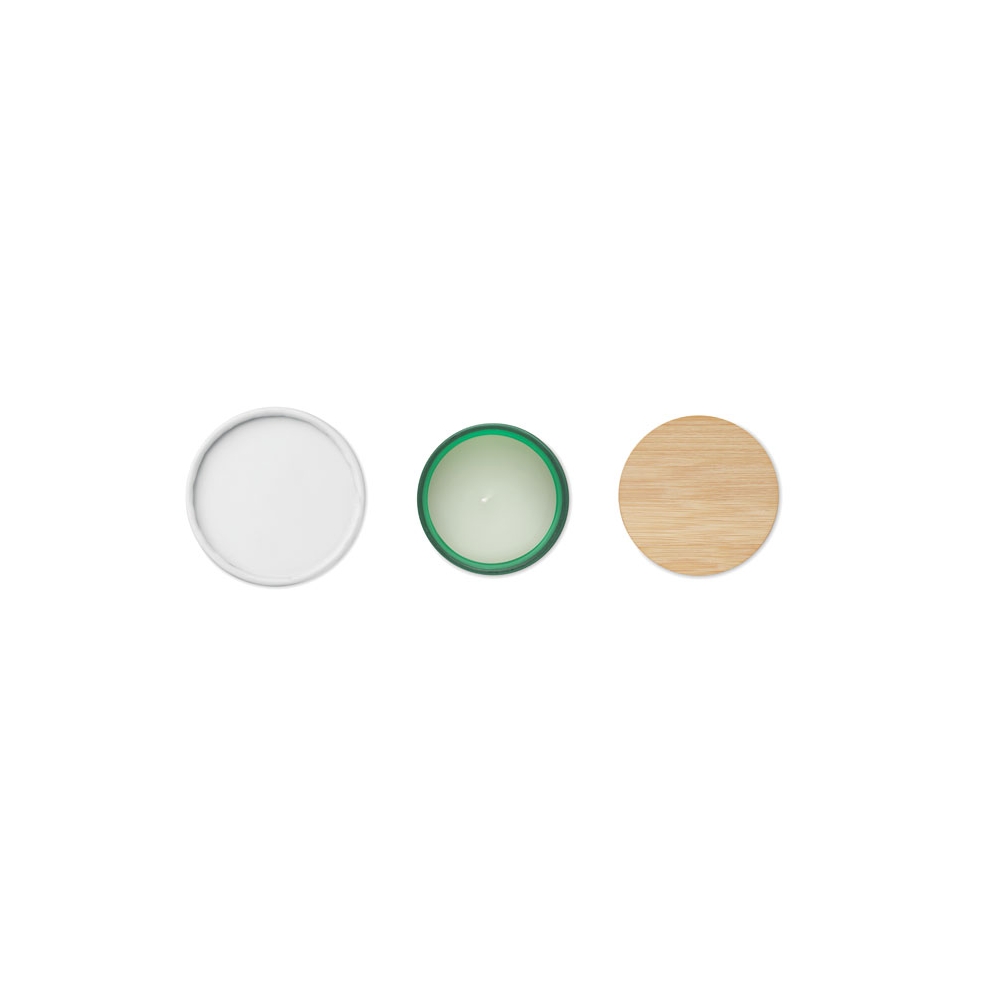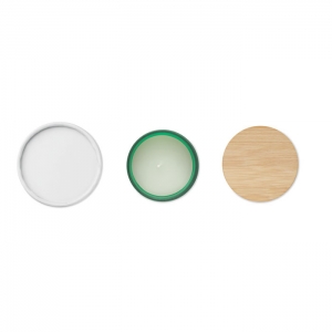 Artikel-Nr: OCBMO6612-09Kerze in einem Halter aus Milchglas mit Deckel aus Bambus. Wachs auf pflanzlicher Basis. Unterschiedliche Düfte. 120 g. Brenndauer: 20 Stunden. Verpackt in einer Papierhülse. Bambus ist ein natürliches Produkt, es kann daher zu leichten Abweichungen in Farbe, Dekor und Maßen kommen.