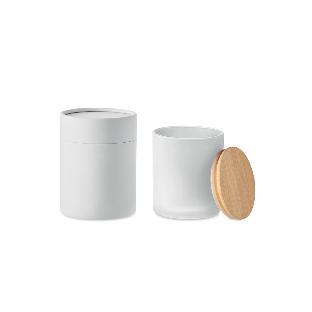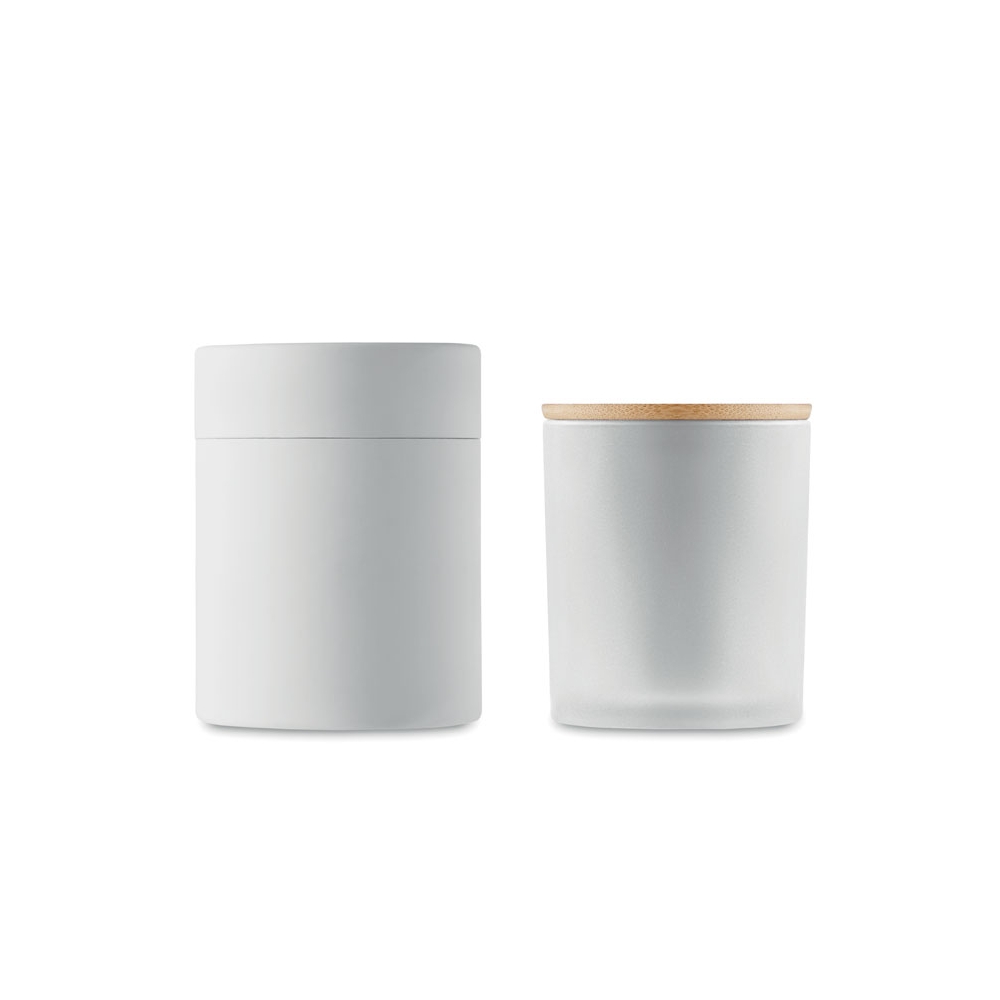 Artikel-Nr: OCBMO6621-06Kerze in einem Halter aus Milchglas mit Deckel aus Bambus. Wachs auf pflanzlicher Basis. Unterschiedliche Düfte. 280 g. Brenndauer: 46 Stunden. Verpackt in einer Papierhülse. Bambus ist ein natürliches Produkt, es kann daher zu leichten Abweichungen in Farbe, Dekor und Maßen kommen.