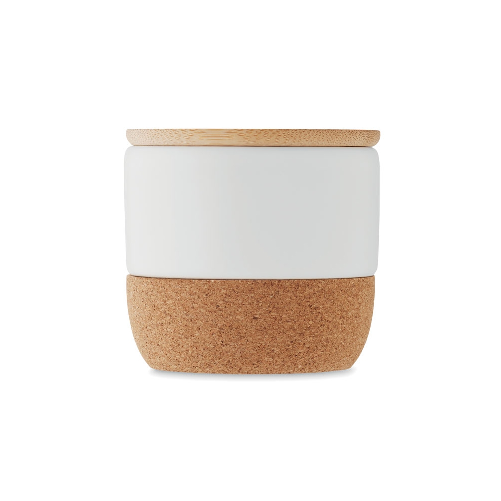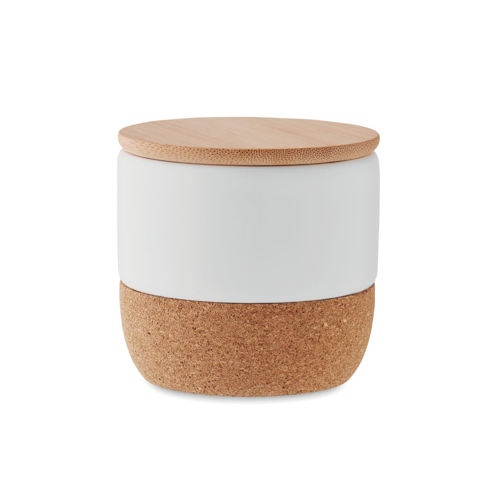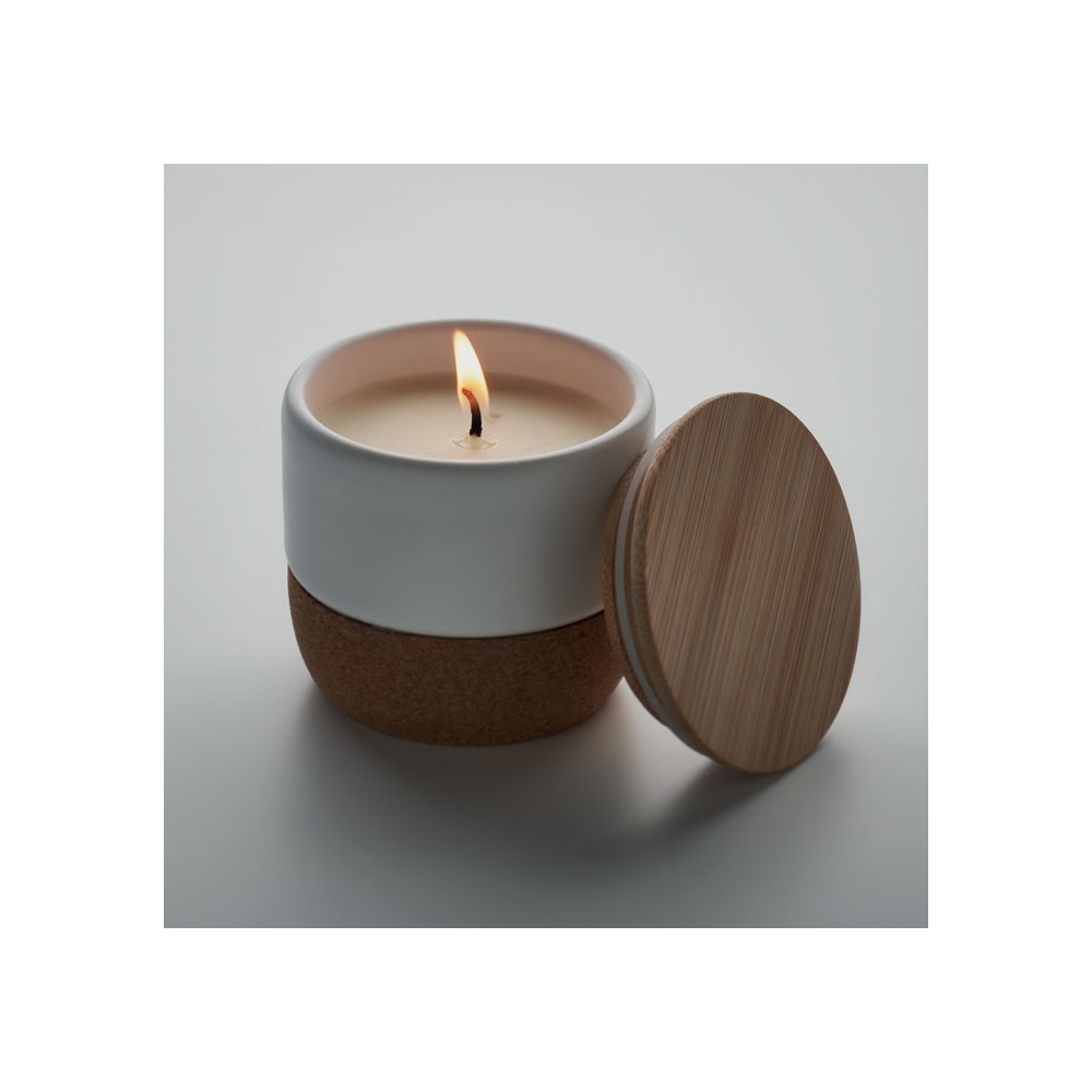 Artikel-Nr: OCBMO2061-06Kerze im Halter aus Steingut. Deckel aus Bambus und Korkboden. Wachs auf pflanzlicher Basis. Aroma: Frische Wäsche. 80 g. Brenndauer: 7,5 Stunden. Bambus ist ein natürliches Produkt, es kann daher zu leichten Abweichungen in Farbe, Dekor und Maßen kommen.