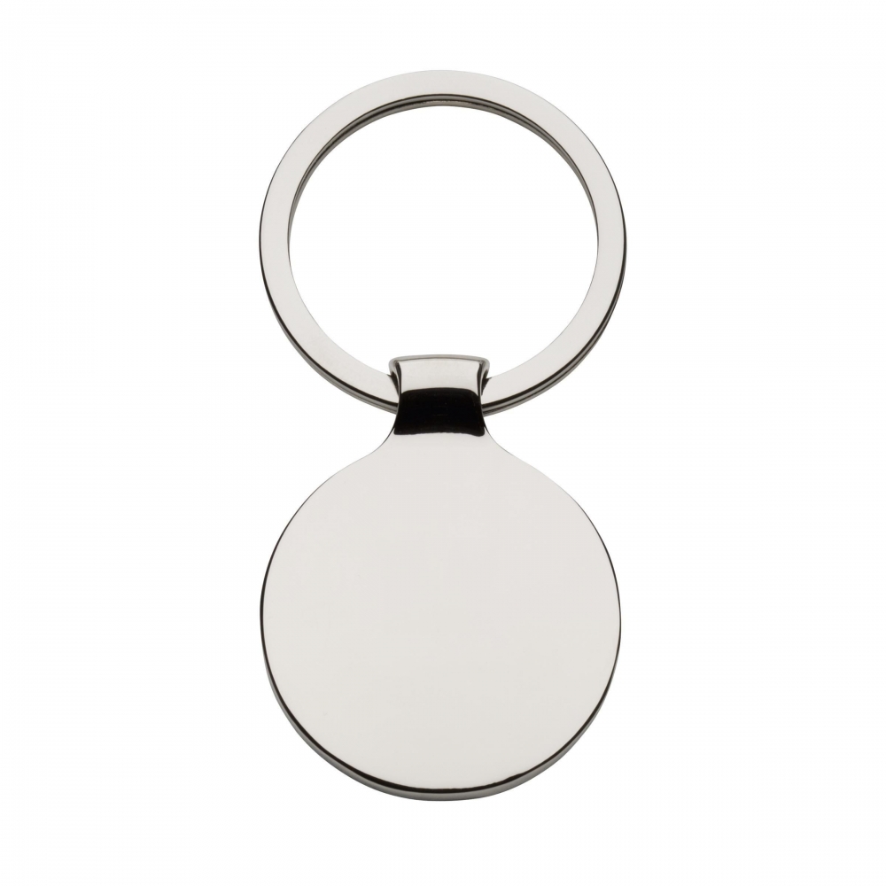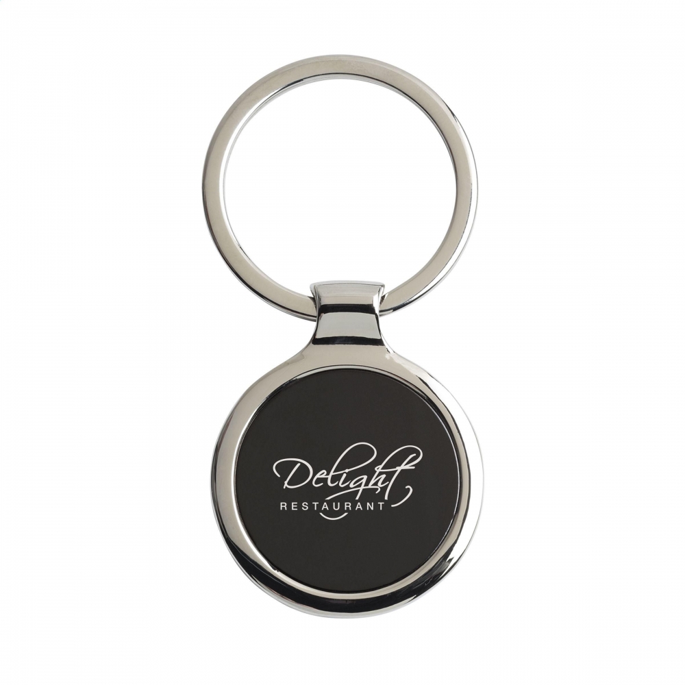 Artikel-Nr: CLP263541-001Runder, hochglänzender Schlüsselanhänger aus Nickel mit schwarzem Metall-Inlay und festem Schlüsselring. Schick und exklusiv.