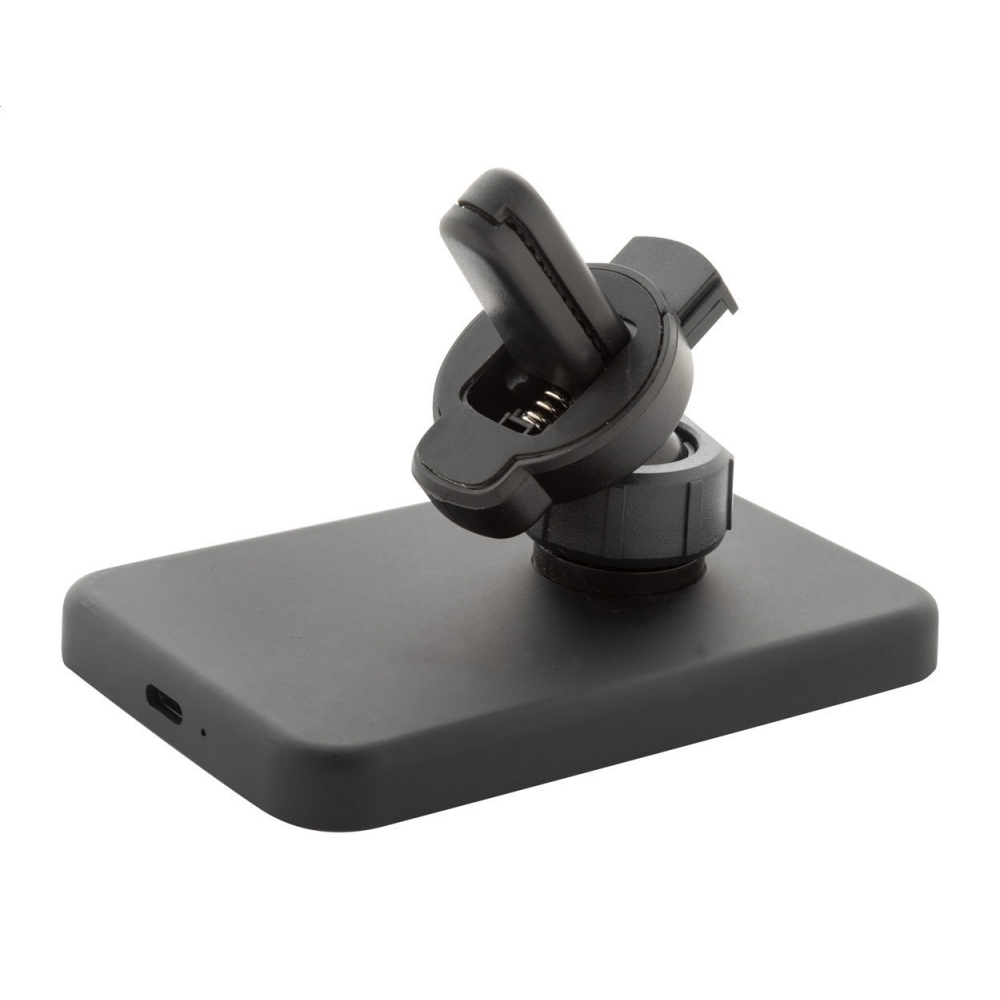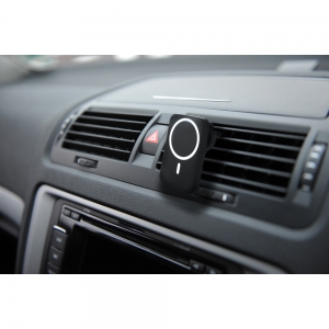 Artikel-Nr: AND864063-10Magnetische Auto-Handyhalterung aus recyceltem ABS-Gehäuse mit integriertem Wireless-Charger (15 W) und verstellbarer Lüftungshalterung. Inklusive selbstklebendem Metallring zur Nutzung der Magnetfunktion auf allen Wireless-Chargern. Kompatibel mit iPhone® 12 oder neuer. Inkl. USB-Ladekabel.