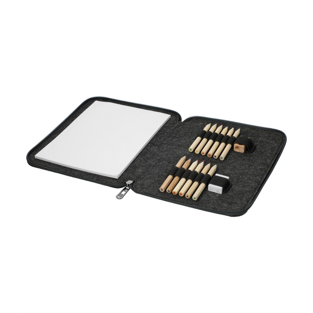 Artikel-Nr: ELT02299012-00000Das Kindermalmäppchen "Fantasia" bringt Kreativität und Ordnung zusammen! Aus hochwertigem Filz gefertigt, bietet es mit einer Größe von 22 x 17 cm genügend Platz für alle Malutensilien. Das Set enthält einen Malblock, kleine Stifte, einen Radiergummi und einen Spitzer – alles griffbereit für kleine Künstler. Ideal für unterwegs oder zu Hause, sorgt es für endlosen Malspaß und Ordnung zugleich!