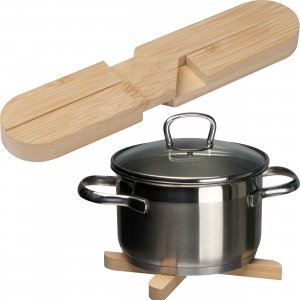 Artikel-Nr: EAG316113Klappbarer Topf- oder Pfannenuntersetzer aus Bambus. Durch die platzsparende Klappfunktion eignet er sich nicht nur für Zuhause, sondern ist auch der ideale Begleiter für alle Camping- oder Outdooraktivitäten. Ihre Werbung wird auf den Untersetzer graviert.