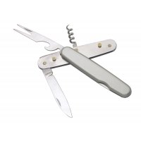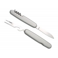 Artikel-Nr: 688ECO015Dieses raffinierte Campingmesser lässt sich auseinander nehmen und zu Messer und Gabel umwandeln. Am Griff finden sich außerdem ein Flaschenöffner und ein Korkenzieher. Heft aus ABS in Stahloptik. Metallteile aus Edelstahl.