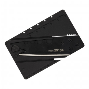Artikel-Nr: ARD29134Das Klappmesser KLINGO ist eine Lösung für jede Situation, wenn das Messer gebraucht wird und man den Eindruck hat, dass es vergessen wurde. Aufgrund der Größe und Form einer Kreditkarte passt dieses Utensil in eine Brieftasche, wodurch es immer griffbereit zur Verfügung steht. Der durchdachte Aufbau ermöglicht das Einklappen der Klinge in wenigen Sekunden. Funktionen: Lineal, Messer, Schlüssel ( 4 Größen), Dosenöffner, Drahtmeißel.