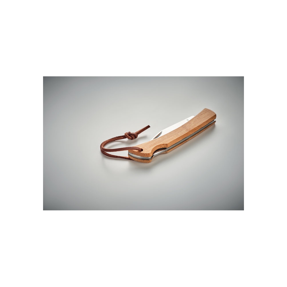 Artikel-Nr: OCBMO6623-40Klappbares, feststellbares Messer aus 2CR13 Edelstahl. Griffteil aus Bambus und Handschlaufe aus PU. Nehmen Sie dieses kompakte Taschenmesser mit auf Ihren nächsten Campingausflug. Das Bambusholz verleiht dem Messer ein natürliches Aussehen. Da Bambus ein Naturprodukt ist, kann es zu leichten Farb- und Größenabweichungen kommen, die das Endergebnis der Dekoration beeinflussen können.