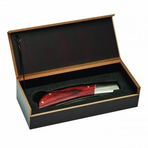 Artikel-Nr: INP56-0301003Edles Taschenmesser SURVIVOR: mit Klappmechanismus und Birkenholzgriff, im Holzetui