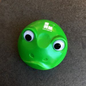 Drückt man auf die Unterseite des Frosches ertönt ein Knacken. Ein Druck ist auf dem Kopf des Frosches möglich. Maße: 6 x 6 x 2,5 cm Material: Kunststoff VE: 48 Stück