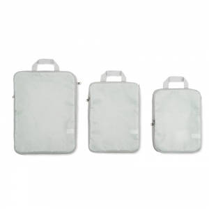 Artikel-Nr: ARD20167-14Der KOMPRESI Kofferorganisator ist ein Set aus drei komprimierbaren Reisehüllen, die es leicht machen, Kleidung und Accessoires in Ihrem Koffer oder Ihrer Tasche zu trennen. Dank der zusätzlichen Reißverschlüsse können Sie das Volumen der gepackten Kleidung reduzieren und so den Platz im Gepäck besser nutzen. Jede Tasche ist mit einem Reißverschluss und einem Griff ausgestattet, um das Tragen zu erleichtern. Abmessungen der Organizer:I. 400 x 310 x 80 mmII. 370 x 250 x 80 mmIII. 310 x 220 x 80 mm