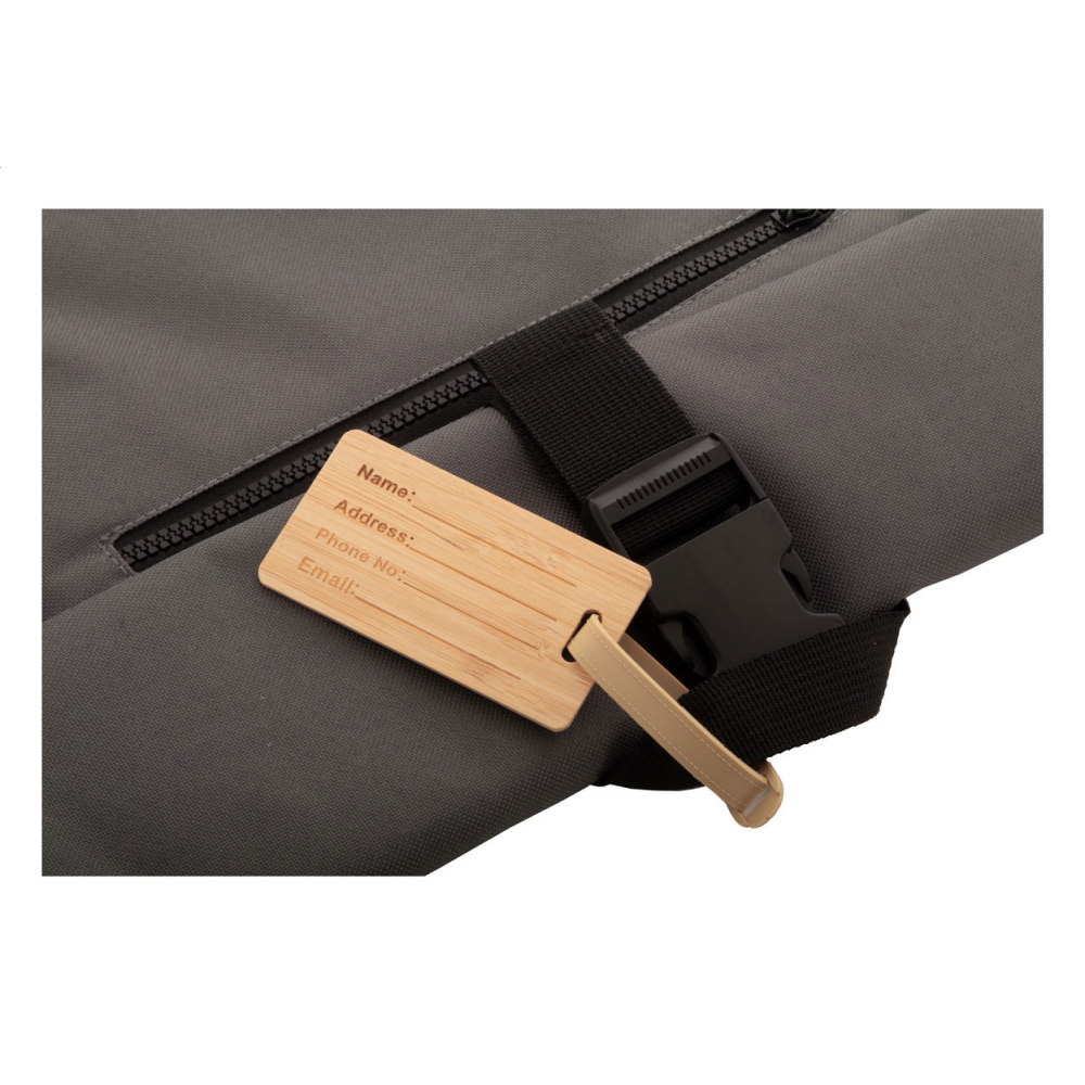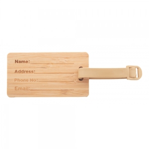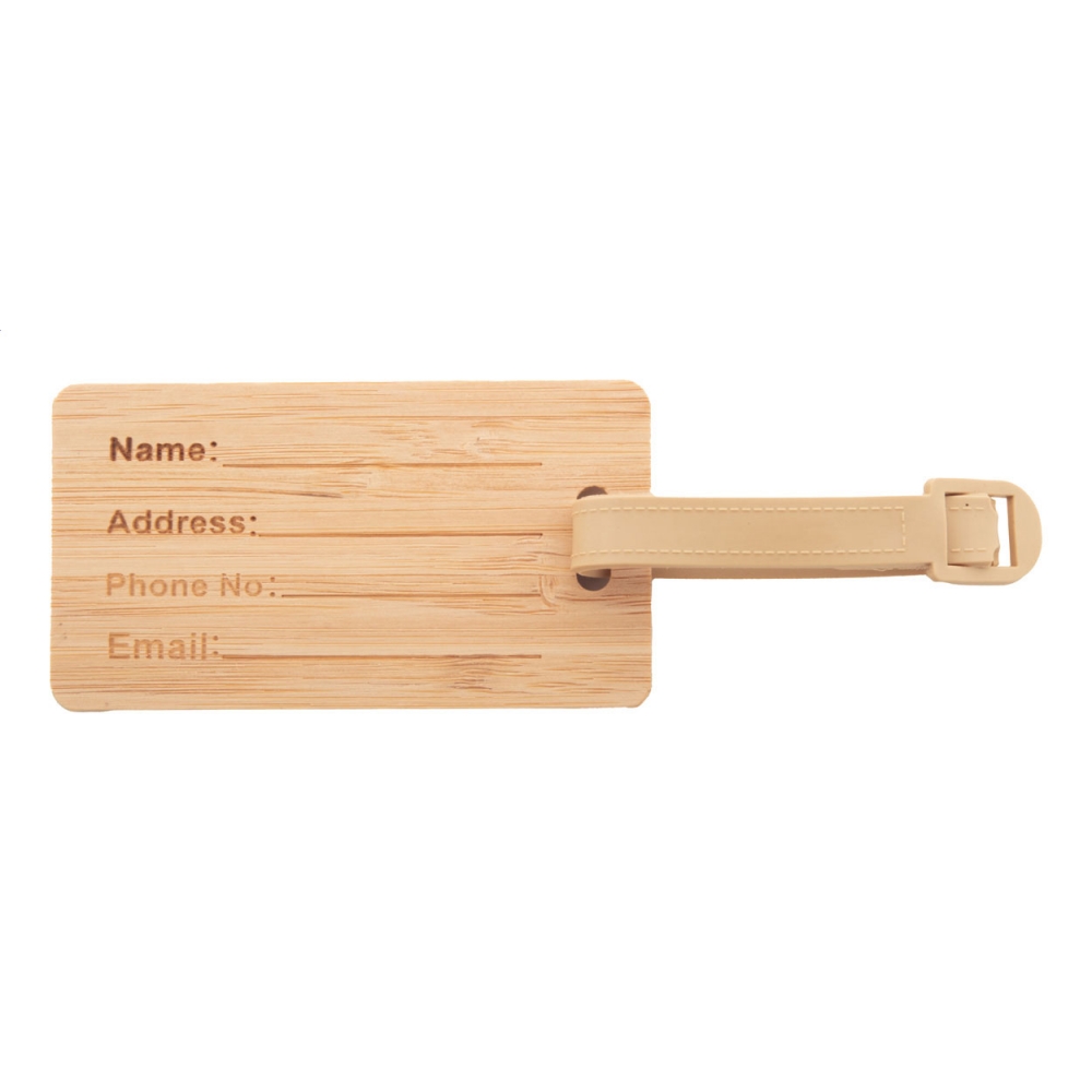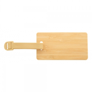 Artikel-Nr: AND800772Kofferanhänger aus Bambus mit Kunststoffband und Schnalle.