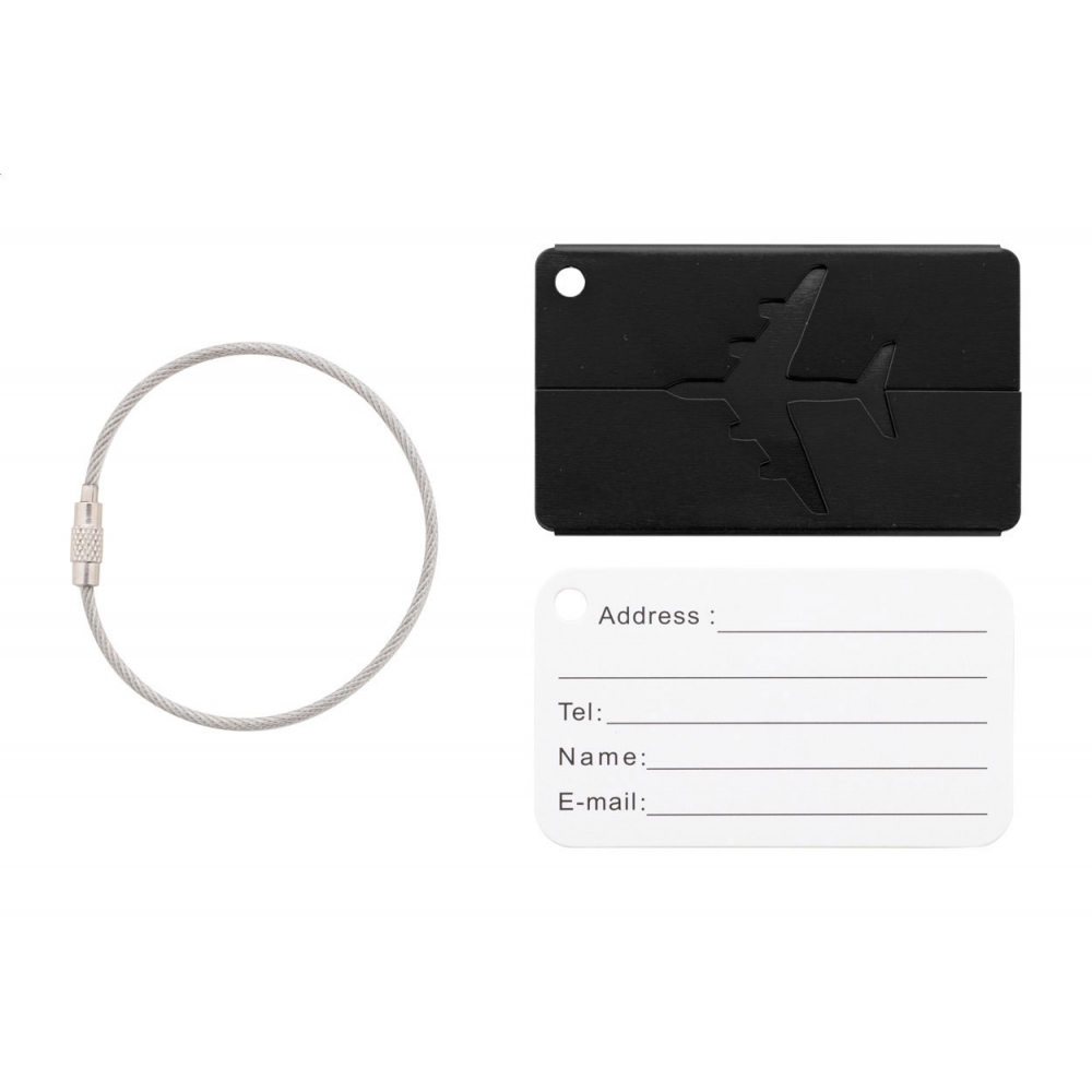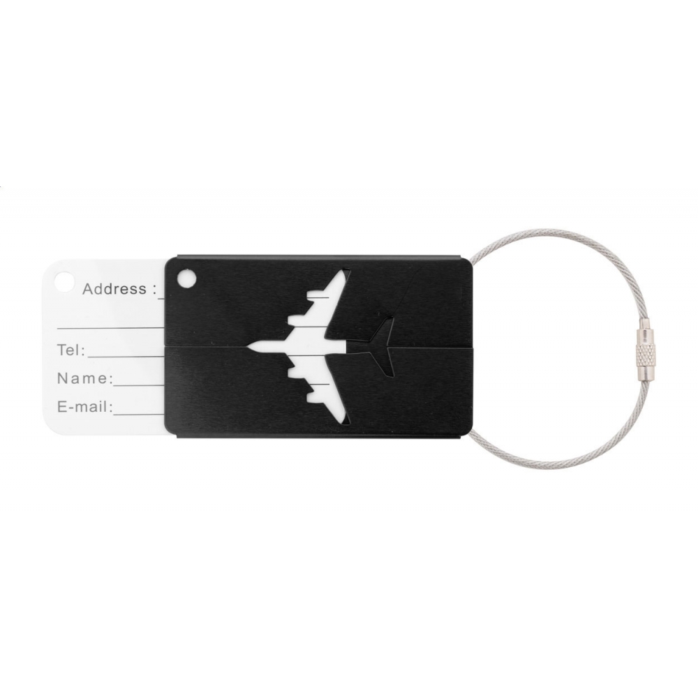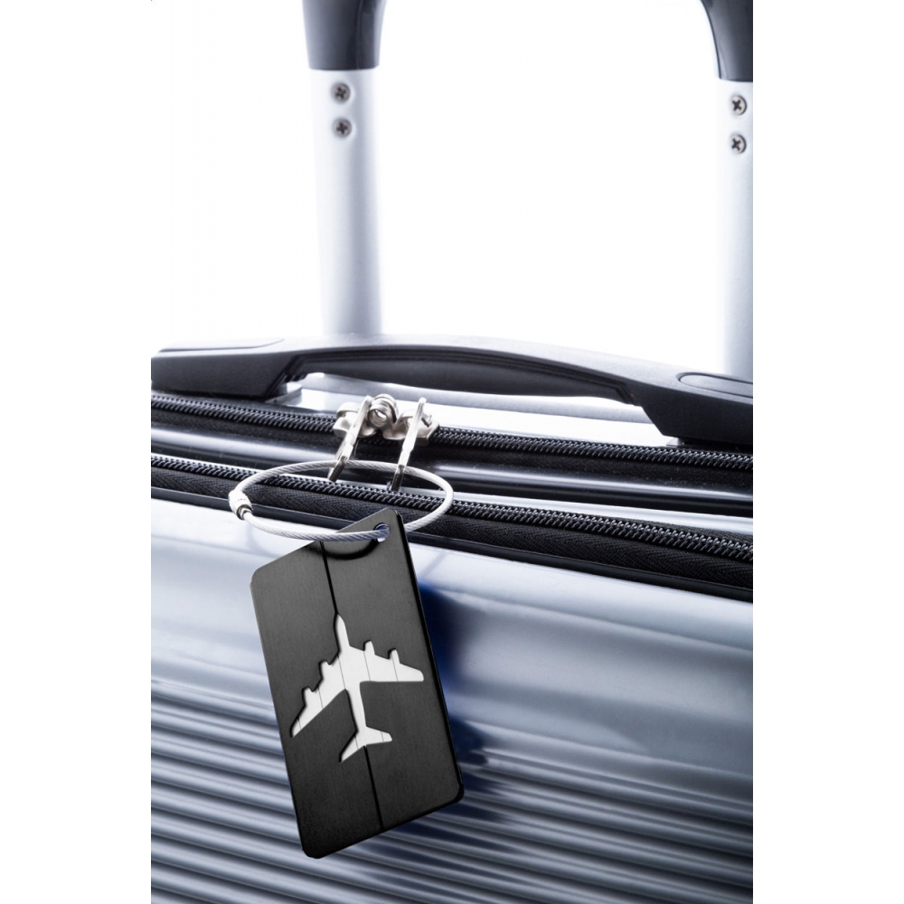 Artikel-Nr: AND808121-10Kofferanhänger mit Flugzeugmotiv aus Aluminium und Schnur aus Metall.