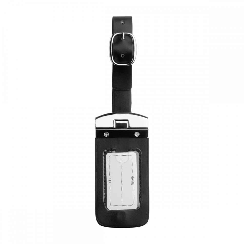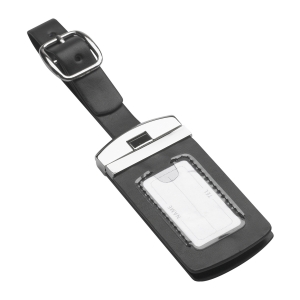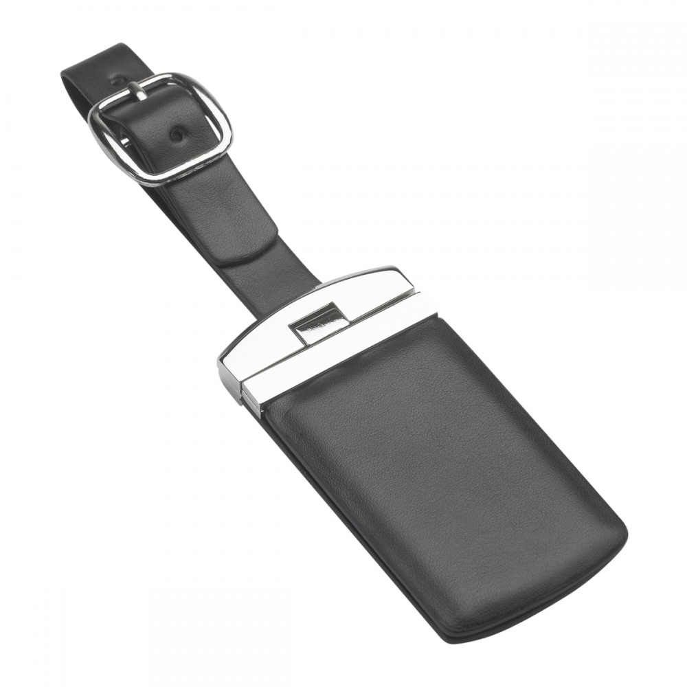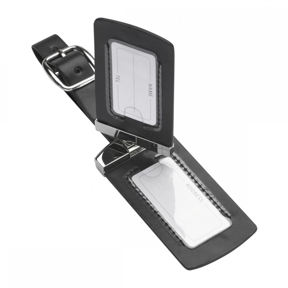 Artikel-Nr: RFS51310Der aufklappbare Kofferanhänger aus schwarzem Kunstleder und edlem Metall, bietet Ihnen zwei Adresslaschen, um Ihre Informationen zu hinterlegen. Mit einem Dornverschluss lässt sich der Kofferanhänger sicher an Ihrem Koffer befestigen. Der Anhänger kann mit einer Lasergravur oder einem einfarbigen Tampondruck veredelt werden.