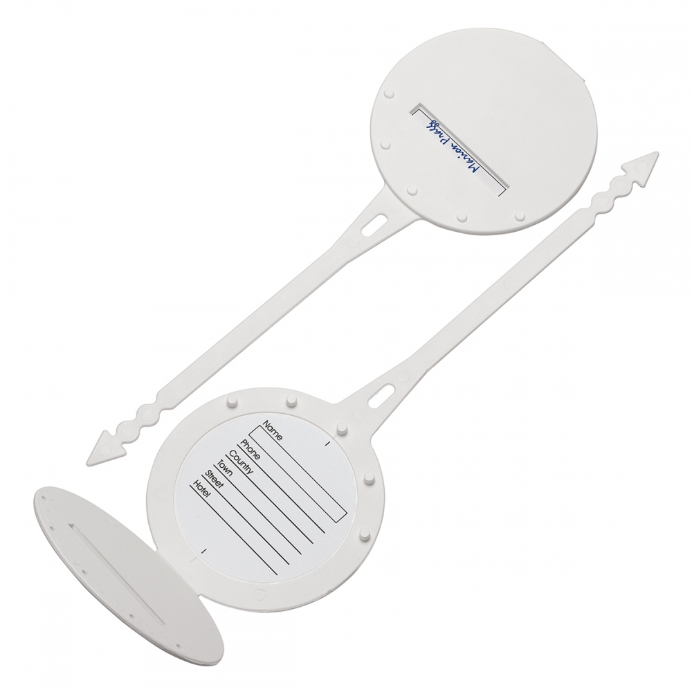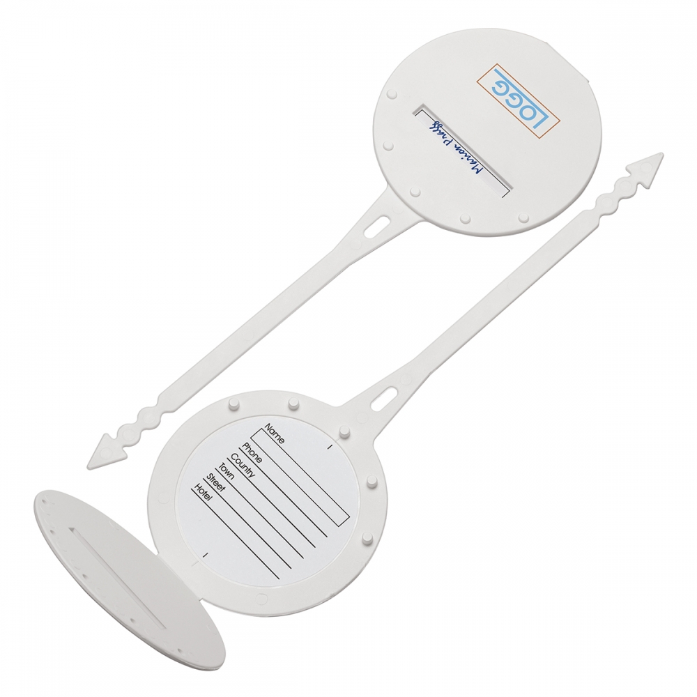 Artikel-Nr: HLA7192-0Kofferanhänger, rund große Werbefläche mit sicherem Schnellverschluss für jede Art von Reisegepäck